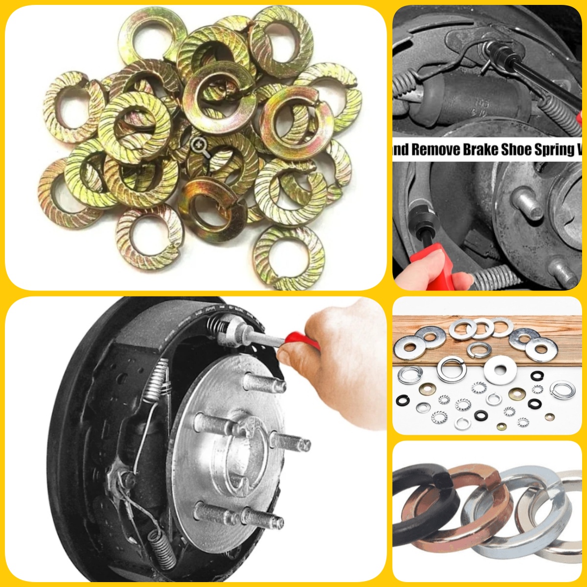 Máy giặt lò xo trong các hệ thống phanh ô tô thường được đặt giữa bu lông bánh xe và trung tâm bánh xe, hoặc giữa bu lông bánh xe và đai ốc bánh xe. Mục đích chính của chúng là cung cấp áp suất đàn hồi liên tục sau khi bu lông được thắt chặt, chống lại các rung động được tạo ra trong quá trình vận hành và phanh xe, ngăn chặn bu lông nới lỏng, và do đó đảm bảo độ tin cậy và an toàn của kết nối giữa bánh xe và đĩa phanh.